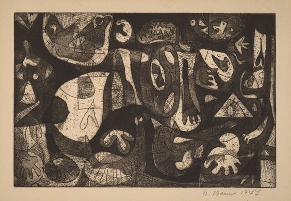 Gordon Waverly Gilkey made this print, Formation, using etching techniques. It's all about process, right? You can see the artist working through it, figuring things out as he goes. The shades of grey give it this ghostly, layered quality. It’s like you're looking at different dimensions all at once. I love the way the white lines squiggle around. They remind me of free association, like letting your mind wander and seeing where it takes you. It’s all about embracing the unexpected, the little accidents that happen along the way. Think of artists like Terry Winters, how they create these complex, layered images that invite you to get lost in the details. With art, there’s never just one right answer. It’s about opening up possibilities, inviting different perspectives, and embracing the unknown.