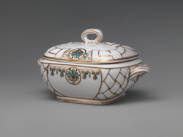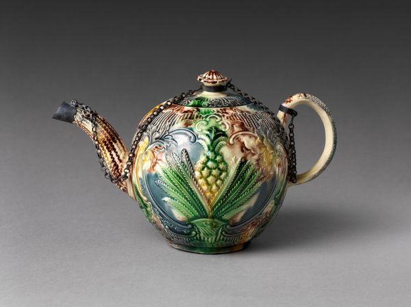 This Tureen with cover was made in Staffordshire, England, at the Thomas Whieldon factory. The mottled colors and organic shapes create a sense of naturalism, almost as if the tureen has been carved from earth itself. The brown, green, and blue glazes meld together, blurring the lines between distinct forms and evoking the geological processes of sedimentation and stratification. The scalloped edges and raised decorations add a layer of complexity. The Whieldon factory was known for its innovative approach to pottery, often experimenting with new techniques and materials. The tureen challenges traditional notions of ceramic design, embracing imperfection and asymmetry. The piece destabilizes the established values of refinement and control. Notice how the interplay of color and texture draws us in, inviting us to contemplate not just its function but also its aesthetic and cultural significance. It embodies a shift toward new ways of thinking about form, decoration, and the very nature of art itself.