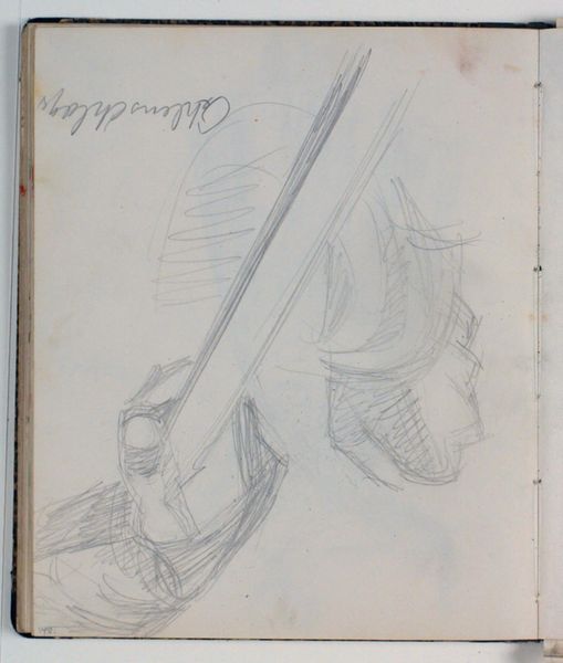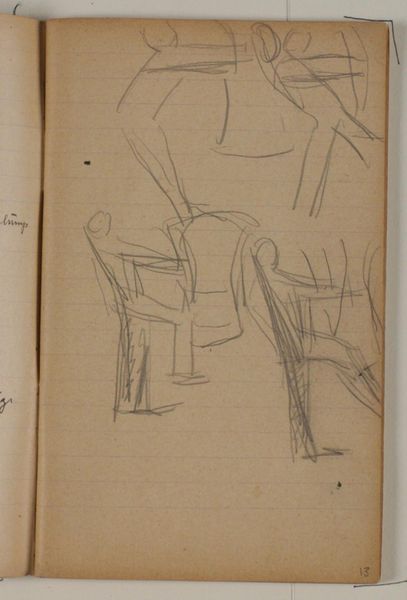 Editor: Here we have Niels Larsen Stevns' "Thorvaldsen. Skitse til 'Engen ved Nysø'," a pencil drawing created sometime between 1930 and 1936. It seems like a quick sketch from life, perhaps, and the looseness of the lines is really striking. What do you see in the way the artist uses line and form here? Curator: Well, let us focus on the syntax of the piece. Notice the interplay between the figure and the space it occupies. Observe how Stevns utilizes varied pencil strokes—hatching, cross-hatching, and contour lines—to define form and shadow. Consider also the negative space and how it pushes at the figure creating a dialogue within the piece. It's incomplete in parts – unfinished, as a study often is – do you feel that contributes to the power of the work? Editor: Absolutely! The incompleteness adds to the feeling of spontaneity and intimacy, like we're looking at a private moment of artistic exploration. The lack of heavy shading creates an interesting effect, because the artist allows the linear elements to become more pronounced. Curator: Precisely. This emphasis on line highlights the inherent qualities of the medium itself—pencil on paper. The visible erasures and reworkings also underscore the artistic process, transforming the sketch into more than just a representational study. It reveals the artist’s thought process and allows us entry into his studio practice. What do you think that access creates for the viewer? Editor: I think it provides access to the hand of the artist and reduces the perceived space between artist and viewer. Thank you, I appreciate how your explanation really focuses on the visual elements themselves. Curator: And you have sharpened your skills of observation today.