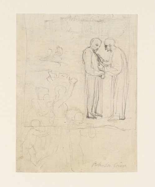 John Flaxman created this small drawing, "A Family Addressed by Angels," capturing a tender moment with ethereal messengers. The composition is dominated by the figures of the family and a hovering cluster of angels above them. The angels themselves are a powerful motif, symbols of divine intervention and guidance. This imagery of heavenly figures bestowing blessings recurs throughout art history, from the Annunciation scenes of the Renaissance to the protective deities of ancient cultures. They speak to a deep-seated human desire for connection to the divine. Consider how such images might tap into a collective memory, recalling similar scenes across different cultures. This cyclical return of motifs underscores the emotional power of images to engage us on a profound level, stirring our subconscious and connecting us to the past.