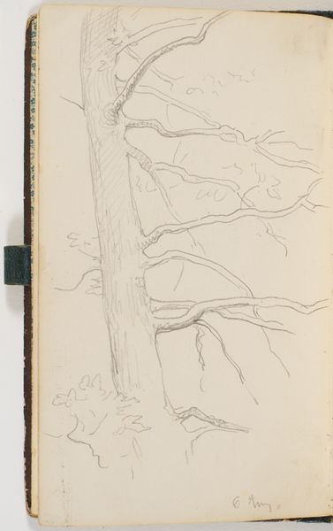 Curator: This is Milton Avery’s "By East Jamaica Road," a graphite and pencil drawing on paper, created in 1943. What’s your initial impression? Editor: Chaotic, but charmingly so. It feels immediate, like a fleeting moment captured. The swirling lines give it a whimsical, almost dreamlike quality. Curator: I see the chaos you mention as a dynamic arrangement of structural elements. Notice the strategic use of hatching and cross-hatching to build up tonal variations, establishing a spatial recession despite the limited range of values. The tree trunk provides a stable vertical axis against which the foliage playfully expands. Editor: The tree, certainly. A classical symbol of connection between earth and sky, between the human and the divine. But consider its positioning. The figure seated beneath the tree, are they seeking shelter, both literally and perhaps metaphorically, amidst the anxieties of wartime America in the 1940s? Curator: An interesting reading. From my perspective, the figure contributes to the overall rhythm of the composition. The gestural quality of the figure echoes the surrounding foliage, almost dissolving the human form into the natural environment. The eye moves fluidly from form to form; Avery prioritizes visual harmony. Editor: Perhaps. Yet the presence of those scrawled notes throughout the image can’t be ignored either. “Rock in light” or "mt gray," such details indicate that the artist documented something about a specific sensory experience, hinting at emotional connections to the natural environment. Curator: Indeed, his method is evident throughout; from his mark making on the figure to his quick annotation of notes he found valuable. I like that those details help reveal his artistic process in a subtle yet powerful manner. Editor: A valuable glimpse into the artist’s mind. It feels as if we are party to the intimate moment of creation, reflecting on the cultural memory and connections evoked. Curator: The formal analysis alongside your perspective adds another dimension of meaning that moves beyond my visual focus, that expands our experience to broader interpretations. Editor: Quite. Through examining Avery’s chosen symbols and motifs, his themes and artistry all point to connections both internal and societal.
