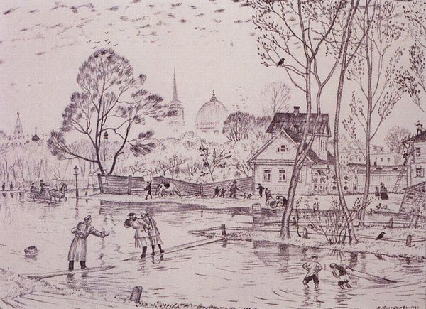Albrecht Dürer made this watercolor, titled 'Wire Drawing Mill,' at an unknown date. The painting presents a bird's-eye view of a bustling 16th-century industrial scene, where the buildings and the river dominate the landscape. The composition is structured around horizontal bands of space: from the immediate foreground, moving to the river, then the buildings and fields, ending with the distant mountains. The artist's use of color provides a sense of depth, with the darker tones in the foreground gradually lightening towards the horizon, creating atmospheric perspective. Dürer masterfully uses the watercolor medium to capture the textures of the buildings and the fluidity of the water. The scene is full of life and labor, illustrating the intersection of nature and industry, reflecting the era's interest in depicting contemporary life. The composition invites us to contemplate the intricate connections between technology, nature, and the human element.