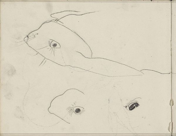 Carel Adolph Lion Cachet made this sketch of a rabbit and the head of a rabbit in graphite at an unknown date. Lion Cachet, who lived from 1864 to 1945, operated in a world undergoing rapid industrialization and urbanization, changes that stirred debates about identity and the relationship between humanity and nature. Cachet's choice of subject matter is interesting when considered through this lens. Rabbits are often seen as symbols of innocence and vulnerability, yet here, the artist presents them in a way that feels both intimate and detached. The disembodied head draws attention to the rabbit as an object, a commodity, or a specimen. Cachet was deeply interested in nature and the Dutch landscape. "I seek to capture the essence of the animal," he once said, "to understand its place in the world." The sketch captures the fragility of life, the relationship between humans and animals, and perhaps, a commentary on how industrialization was impacting the natural world. It’s a quiet reflection on existence.