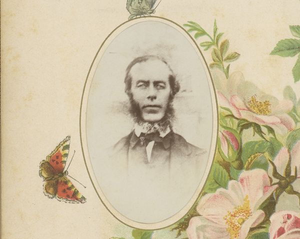 John Hatherill created this portrait of a man using photography, around the time he was born, in the mid-19th century. The photograph's framing within an ornate, colorful border invites us to consider the social conventions of portraiture during that era. In 19th-century Europe, photography emerged as a powerful tool for documenting individuals and shaping social identities. The formal attire and composed demeanor of the subject speak to the rising middle class's aspirations and the desire to project an image of respectability and status. The inclusion of decorative elements, such as floral motifs and architectural details, further suggests the subject's connection to cultural institutions and traditions. To fully understand this photograph, we would need to delve into the social and economic conditions of the time, examining how photography was used to reinforce existing power structures and negotiate new forms of social mobility.