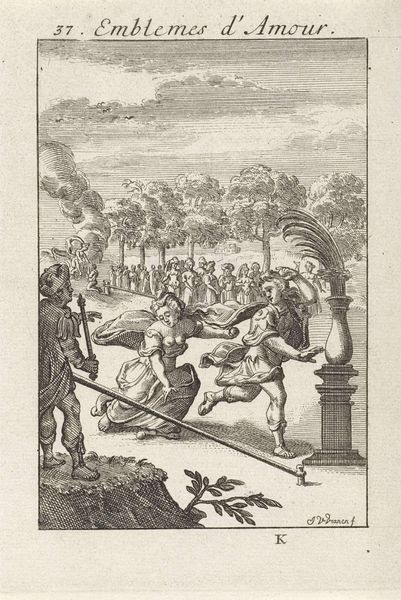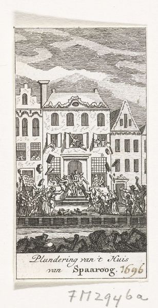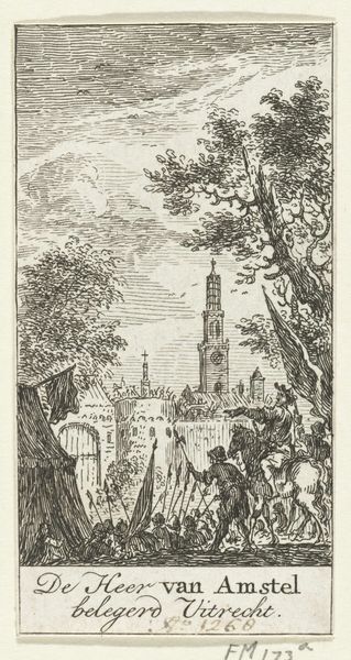 Curator: This is a print entitled "Vertrek van Willem III," or "Departure of William III," created between 1722 and 1784 by Simon Fokke, and it’s currently held here at the Rijksmuseum. Editor: It feels delicate. Almost like a captured, hushed moment despite depicting a grand departure. The monochromatic lines lend a strange stillness to the implied movement. Curator: The process of engraving allows for incredible detail, and I think that delicate feeling comes from Fokke’s mastery of the technique. We're looking at an intaglio print, meaning the image is incised into a plate, likely copper in this case, then filled with ink and pressed onto paper. It’s fascinating how a reproducible medium, designed for wider distribution, can carry such nuance. You know, there’s also something radical in treating a political departure, usually bombastic and heroic, in such a landscape. Editor: Yes, exactly! It prompts questions about access, distribution, and who this image was truly intended for. Was it aimed at an elite circle who collected prints, or was it perhaps trying to influence a broader public opinion? I'm really interested in what papers would have been accessible or valued at this time and how they contributed to that end result. But, on a more evocative point...I'm stuck by the muted emotion in each person's figure, no visible agony nor elation... the people don't seem very impressed. It makes the historical departure feel commonplace or part of ritual. What are you thinking? Curator: I am drawn to your material analysis as well. As an artist myself, however, I feel the power here rests in its ambiguous temporality and those subdued emotions. Is it simply a record of an event, or something more symbolic? I look at the figures grouped closely together as the prince is ready to meet a different sort of destiny... I wonder about the quietude and what it tells us about Fokke's perspective, not necessarily of Prince William specifically, but maybe how they envisioned legacy. Editor: I see it very differently after considering that point. Focusing so closely on medium specificity maybe clouded the emotive atmosphere. Curator: Perhaps that's the beauty of this work; the medium brings history and material and that sense of place into something very personal to our interpretations of legacy. Editor: Yes, definitely! It is that convergence where history, process, and personal experience interlace! I'm left appreciating this on many different levels now.