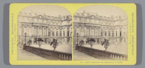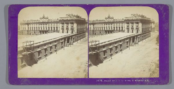 Jean Andrieu made this stereoscopic photograph of the Palacio Real in Madrid sometime in the mid-19th century. The process involves a camera with two lenses, mimicking the binocular vision of our eyes. When viewed through a stereoscope, the two images merge, creating a three-dimensional effect. Photography in this period was a complex and laborious process, far removed from the instant snapshots we take today. It involved coating glass plates with light-sensitive emulsions, carefully timing exposures, and meticulously developing the images in a darkroom. Each print was a unique object, reflecting the photographer's skill and the specific conditions of the moment. Stereoscopic views like this were hugely popular, offering a virtual window onto the world. They democratized access to distant places and cultures, bringing the wonders of the world into people's homes. The mass production and consumption of these images also speaks to the rise of industrial capitalism and a growing desire for visual entertainment. By understanding the materials and processes behind this photograph, we can appreciate its significance not only as a historical document, but also as a tangible object that connects us to the past.