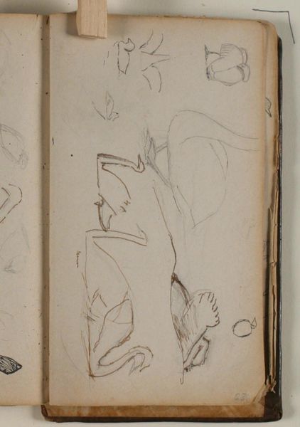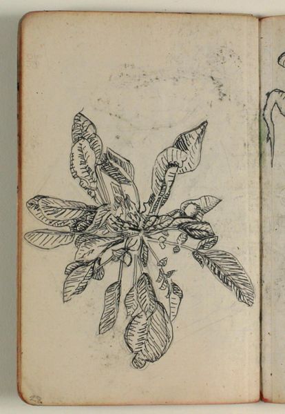 Curator: Up next, we have Niels Larsen Stevns's "Studie af rødkløver, samt notater," a drawing made between 1906 and 1910, housed here at the SMK. It employs pencil and colored pencil on paper. What's your first take on this one? Editor: Intimate and delicate, like stumbling upon a forgotten page in a loved one's journal. The clover looks a little worn, though, a survivor, perhaps. Curator: Worn indeed, considering the medium! Notice the texture of the paper, its very substance suggesting a close relationship to natural, organic material, echoing the clover itself. How do you think the very process of creating this – the physical act of sketching with graphite – shaped Stevns’s artistic investigation? Editor: Absolutely. The sketchbook format, those hasty jottings, position the artwork as a raw material, or an exercise for understanding class and agrarian contexts that shaped rural communities. I'm curious how the choice of such ordinary flora speaks to broader social realities. Was Stevns perhaps examining working-class access to beauty, reframing what constitutes artistic subject matter? Curator: Intriguing question! Stevns, trained in academic art, demonstrates mastery in form here. This drawing moves beyond botanical accuracy; notice the subtle gradations of tone, achieved through layers of pencil work. Do these subtle textures underscore a tension between representation and lived, working realities? Editor: It's more than mere aesthetic exercise, isn’t it? By focusing on clover – a humble, easily overlooked plant – Stevns acknowledges the interconnectedness between humans and nature. He also, perhaps unintentionally, exposes agriculture as a tool to manipulate working-class groups through land. Curator: Your comment really highlights the layers here. Considering Stevns's choice of humble material like a sketchbook—what do you read into that regarding accessibility of art-making itself, challenging traditional notions of "high art"? Editor: Precisely! Perhaps he questions artistic and agricultural hierarchies by embracing the informal. In its incompleteness and humble subject matter, the sketch reminds us that access to land is unequal. Curator: What an insightful angle, highlighting the political resonance of natural, seemingly benign objects! The material limitations push him to use resourcefulness, and underscores his technical skill at the same time. Editor: Stevns, even through a simple botanical study, urges us to reflect critically. Curator: I concur—art’s value lies in unpacking seemingly simplistic sketches to reveal complex layers that influence communities—it pushes beyond simple observation into an active dialogue with both nature and each other.