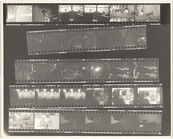 Editor: This is "London 62," a gelatin-silver print by Robert Frank, created between 1952 and 1953. The collection of images layered together seems to portray an eerie streetscape. What do you make of the use of such stark monochrome tones? Curator: Monochrome, isn't it curious? I see more than the absence of color; it is almost a character of itself. With these film strips assembled together, it becomes a layered meditation on fleeting moments, wouldn't you agree? Do you catch the hum of the city, almost a quiet symphony that's slightly melancholic? I feel as if I'm looking through someone’s hazy memories, fragmented and raw, like life! Editor: Absolutely! It's funny that you say memories... I initially saw the strips more like "behind the scenes" access and how the photographer got the final shot... or it’s more like a personal journal. Was he aiming to document a city, or just personal emotion, here? Curator: Or, perhaps a love letter? Frank found beauty in what others dismissed as grit. What others call imperfection is what gives the photos a palpable honesty. I always admire Frank’s rebellious eye – he isn't documenting so much as he's dreaming aloud on film. What do you take away from all these hazy figures in this visual poem? Editor: It almost romanticizes the isolation and the chaos within urban living… Curator: Exactly! It’s a glimpse, fleeting, genuine. "London 62" transforms London into a feeling, a mood… Editor: It makes you want to rummage through old photos of your own. Curator: It does, doesn’t it? To see what whispers remain. Thanks for this conversation!