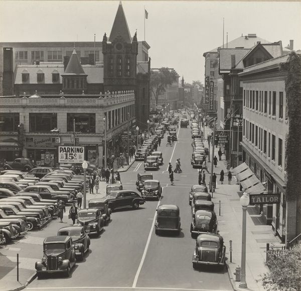 Walker Evans made this photograph in Bridgeport, probably with a large format camera, at a time when factories were gearing up for war. It's a photograph, so it lacks the kind of texture you get with paint, but look at the way Evans has captured the granular feel of the city. There's a grit to it, a kind of realism that feels very true. The light is even, almost documentary, but within that evenness, there are these amazing details. Take the woman in the center, carrying what looks like an art portfolio. What does she make of the war, of the city? Evans wasn't trying to pretty things up, and the picture isn’t overly composed or stylised. It's honest, like the photographs of August Sander, showing us the world as it is. It's about letting the subject speak for itself, about finding the beauty, or the truth, in the everyday. It's a conversation about how we see and what we choose to focus on, and that conversation continues to this day.