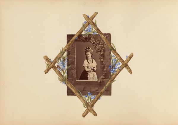 Editor: This is an untitled work from 1865 by Mary Filmer, featuring portraits of Alexandra of Denmark and Albert Edward, the Prince of Wales. It's quite decorative! What strikes you most about its composition? Curator: The dual portraits, framed by heraldic symbols and calligraphy, present a fascinating study in visual balance. Notice how Filmer uses color to unify the disparate elements. The blue ribbon anchors the composition, doesn't it? Editor: It does! I also see that the crowns above each portrait add to the sense of formality. Curator: Precisely. The meticulous arrangement suggests a deliberate attempt to elevate the subjects, to imbue them with regal significance through formal devices. What have you learned looking closely at Filmer's approach? Editor: I see now how each element supports the royal theme, even without knowing the historical context. Curator: Yes, and that is the power of formal analysis, revealing the artwork's underlying structure.