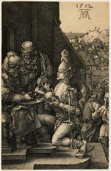 Albrecht Dürer's "Christ Before Caiaphas" is a stark black-and-white engraving, dominated by contrasting textures and meticulously rendered detail. The scene is thick with dread, the close proximity of the figures amplifying the claustrophobia. Dürer masterfully uses the stark contrast between light and shadow to create depth and drama. Linear precision characterizes the garments, faces, and weaponry, with close hatching emphasizing the emotional intensity of the moment. The visual tension lies in the composition itself: Christ is surrounded and constrained, while Caiaphas occupies a position of height and power. Dürer here destabilizes the traditional notions of religious authority. The viewer is compelled to question established meanings. The use of line and form serves not only an aesthetic purpose, but also engages with larger questions of justice, faith, and the abuse of power. Ultimately, this piece invites continuous reflection on the nature of truth and authority, and asks us to confront our own interpretations of this pivotal biblical narrative.