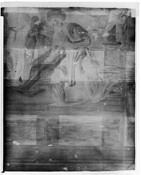 Curator: Here, we have an X-radiograph of "The Agony in the Garden" by an artist in the style of Raphael, from the Harvard Art Museums, its film measuring 14 by 17 inches. Editor: Whoa, spectral! It's like peeling back layers of time, seeing the ghost of an image. You can sense the turmoil, but filtered through this strange scientific lens. Curator: Indeed. X-radiography allows us to analyze the artist's process – the underdrawing, pigment distribution, and any alterations made. The production of it! Editor: So, it's not just about Raphael's original agony, but also the agony and labor of artmaking itself? The hidden decisions, the "oops" moments buried beneath the surface? Curator: Precisely. It challenges the idea of the flawless masterpiece. We see the materiality and the hand, the work and production. Editor: Makes you wonder about all the unseen layers in everything, doesn't it? Alright, I'm signing off with a newfound respect for X-rays and artistic vulnerability.