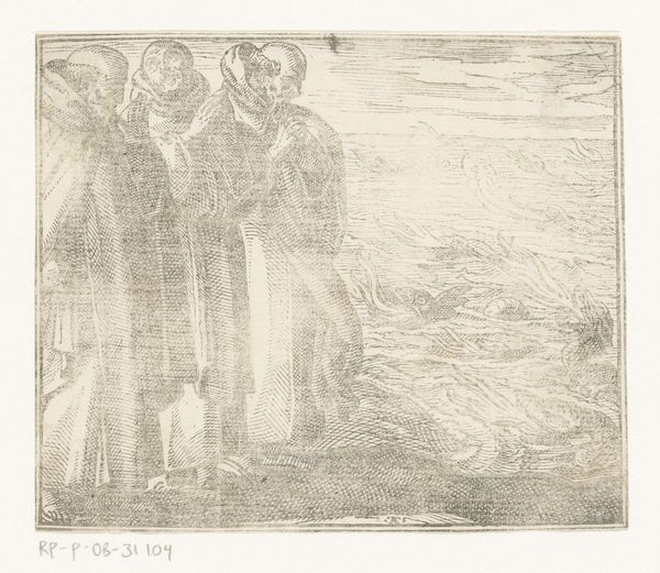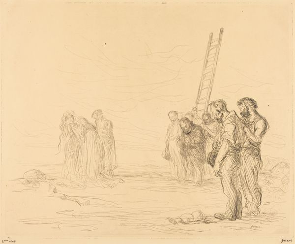 Jean-Louis Forain made this etching, Calvary, sometime between 1852 and 1931, using a network of pale, incredibly delicate lines. It’s like he’s feeling his way through the scene, not just depicting it. Look how he scratches at the sky – it's almost shivering with grief. The figures huddle together, barely there, just suggestions of form. But that's what gives them their power, right? They are not meant to be concrete, just a feeling, a shared sense of loss and bewilderment. I think about Goya’s etchings when I look at this. He, too, knew how to make a line carry the weight of the world. But there's also something very modern in Forain’s approach. It feels like he’s not trying to tell us what to think, just inviting us to witness, to feel. Art doesn’t have to be an answer, sometimes it’s enough to just ask the question.