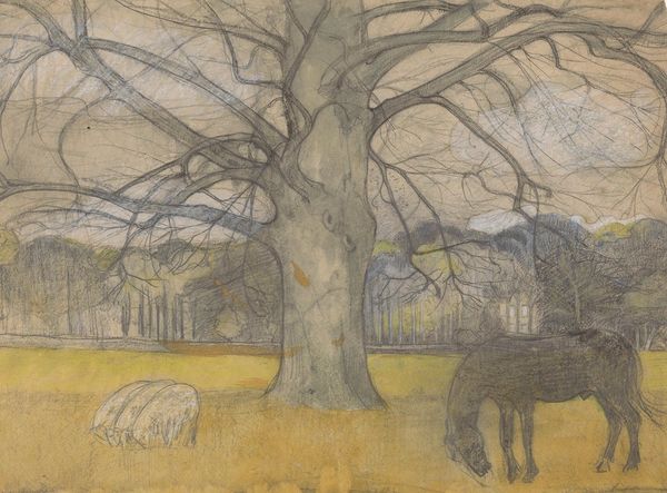 Xu Beihong painted "Cultivation On The Peaceful Land" with ink and colour on paper. Here, farmers till the soil with the help of an ox, beneath a weeping willow. The ox is a symbol deeply rooted in human history, representing not just agricultural labor but also strength, endurance, and sacrifice. From ancient Egypt, where oxen were sacred and symbols of power, to the Minoan culture's bull-leaping rituals, the animal’s image resonates through time. In the context of this artwork, the ox embodies the collective struggle and perseverance of rural communities, echoing the cyclical nature of life and the rhythms of the earth. The willow tree also has significance. Known for its resilience and flexibility, it can bend without breaking, which can symbolise adaptability and strength in the face of adversity. The image of the weeping willow is associated with mourning, or peace and hope in other contexts, representing nature's cyclical patterns of life, death, and rebirth. These images have been passed down through history, shifting in meaning as collective memory and subconscious processes affect the production and interpretation of the motif. In “Cultivation On The Peaceful Land,” the symbolism reveals the cyclical progression of the farmer's work.