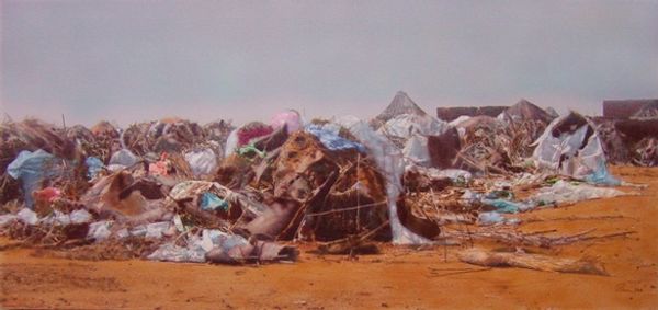 Robert Adams made this black and white photograph, Santa Ana Wash, San Bernardino County, California, sometime in the 20th century. Adams' process here feels like a careful consideration of light and shadow, almost like a painter working in monochrome. Look at the way the light catches the large rock in the foreground. It's not just a rock, is it? It's almost like a stand-in for a human figure, imposing, solid, yet vulnerable amidst the detritus. The texture of the rock, with its subtle gradations and streaks, is beautifully rendered. The high contrast emphasizes the gritty reality of the scene, which is filled with discarded objects. This gives a sense of entropy. Adams reminds me of the New Topographics photographers. They share this unflinching gaze at the modern landscape, finding beauty in the mundane, and prompting us to reflect on our relationship with the places we inhabit.