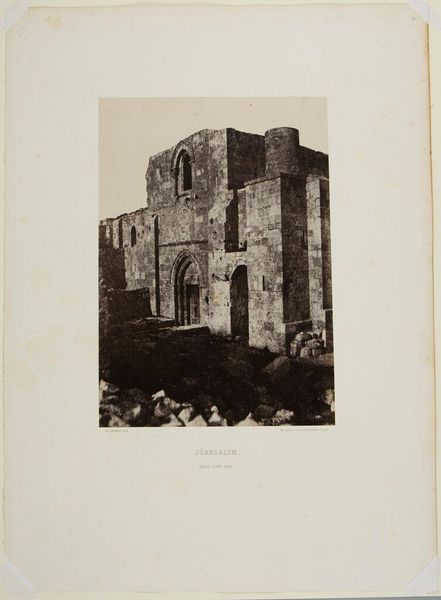 Curator: This is a gelatin silver print from before 1894 entitled “Gezicht op Château du Haut-Barr te Saverne,” by Charles Bernhoeft. Editor: The photograph projects an atmosphere of solitude and enduring monumentality. I'm immediately drawn to the contrast between the aged stones and the almost ephemeral figure of the woman. Curator: I am fascinated by the way Bernhoeft chose to present this location. The figure appears in the landscape and evokes Romantic painting. I see echoes of the Sublime and the picturesque and the figure suggests the ephemerality of human life against the backdrop of history. Editor: But beyond the Romantic echoes, think about the technology involved in crafting a gelatin silver print. This wasn't just snapping a picture; it involved laborious darkroom techniques, manipulating chemistry, carefully chosen paper… Bernhoeft wasn’t just recording a scene; he was actively constructing an image using then cutting edge science to depict a crumbling relic of the past. Curator: That's a good point. The very process he employed speaks to the relationship between the "now" and history. This château, which has weathered so many storms, and that woman tending the gardens is transformed by chemical means into something enduring that reminds us that time unfolds, bringing constant transformations in culture. Editor: And don’t forget the social implications of photography in this period. Bernhoeft wasn't some lone artist; he had clients, audiences, perhaps even patrons commissioning specific views of certain landmarks to promote tourism or regional pride. This print itself likely served as a portable memento, a symbol of access and connection to that place and social class. Curator: Indeed, understanding how photography democratized art while creating new forms of exclusivity certainly expands our comprehension of Bernhoeft’s goals in making this particular artwork. His sensitivity and skills capture both the subject’s physical aspects as well as deeper symbolic resonances, the allure of old places, perhaps a yearning to belong, an anchor in the landscape. Editor: Examining this image reminds us that art is so much more than just the final product. We need to understand both the hands that labored to make it and also the many hands who held the final piece. Only by understanding these dualities can the piece itself unlock a richer perspective on the human narrative.