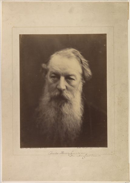 This photograph of John Ruskin was made by Frederick Hollyer, using a photographic process that was itself in dialogue with both art and industry. Hollyer was known for his platinum prints, a technique which gives a wide tonal range and exceptional detail. The process involves coating paper with platinum salts and exposing it to light through a negative. The print is then developed and cleared, leaving a matte, silvery image. Consider the labor involved in producing such an image, from the mining of platinum to the careful work in the darkroom. Photography in the late 19th century was a complex mix of science, craft, and artistry. The platinum print was prized for its permanence and beauty, but also for its association with the values of truth and objectivity. By attending to the material and the making of this photograph, we gain a richer understanding of its cultural significance, moving beyond the simple representation of Ruskin to consider the complex interplay of art, industry, and social values.