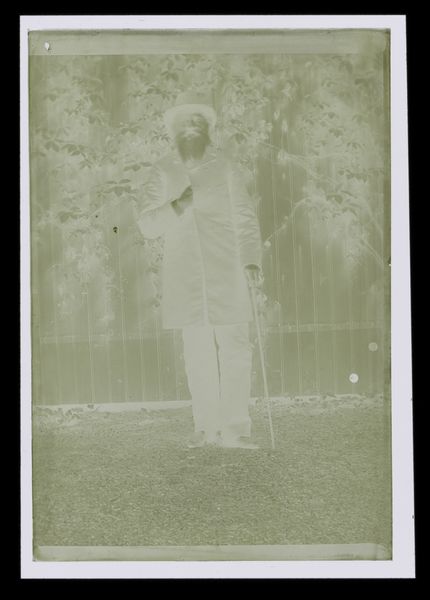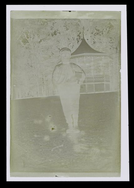 Editor: This gelatin silver print, *Portret van een onbekende man en vrouw, staande op straat* – or *Portrait of an Unknown Man and Woman Standing in the Street*– dating from around 1865 to 1900, has this ghostly, dreamlike quality. I’m really drawn to the sense of anonymity within such a public scene. What catches your eye about it? Curator: What intrigues me is the figure's symbolic weight – despite being anonymous, they're firmly planted in our collective memory, thanks to the camera's unflinching gaze. Notice how the very ambiguity becomes a blank canvas? What emotions are stirred when you consider them representing all people, or no one in particular? Editor: That's fascinating, the idea of them being both nobody and everybody. It makes the photograph feel timeless. The setting feels both ordinary and stage-like at the same time, in a street. It also feels incredibly lonely, in spite of them being outdoors in an urban street scene, or possibly because of that. Curator: Absolutely. Streets as transitional places speak of broader journeys – physically, socially, or even psychologically. How do they trigger the sense of historical self when the identities of the photographed couple and photographer remain uncertain, almost like a cultural inheritance without parents? Editor: I hadn’t considered that! The idea of inherited anonymity adds a whole new dimension to how I see this image. It makes me think about all the unseen stories contained within it. Curator: Precisely, and that’s the real power of the icon, isn’t it? Revealing narratives woven deep within the ordinary. Editor: Thanks. I feel like I’m leaving with a new appreciation for not knowing. Curator: Indeed. Sometimes, what we *don't* know shapes our understanding more profoundly.