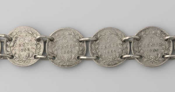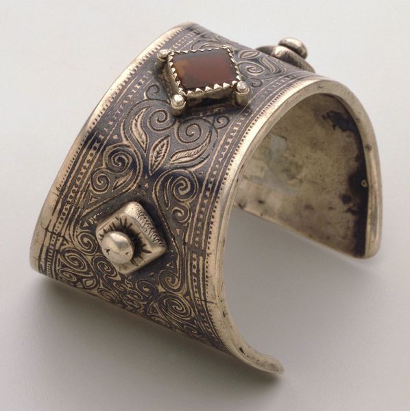 Curator: Here we have a set of decorative-art pieces titled "Belt Buckle and Anklets," created in 1832 by an anonymous artist. The materials used are gold and silver on metal. You'll find this display at the Minneapolis Institute of Art. Editor: They look quite intricate. My immediate impression is their exquisite detailing – they project a feeling of restricted status and rigid conformity. The heavy materials give me a sense of immobility. Curator: Yes, the workmanship is astonishing, particularly the filigree patterns. It shows mastery of symmetry, repetition, and precise execution within the floral motifs. Note how these formal elements evoke classicism. Editor: I think it is important to remember, while focusing on these visual forms, that jewelry and belts were and still are not only about personal adornment, but they signal social identity and play a significant role in rituals and customs within particular cultural contexts. Who would have worn these, and under what societal expectations? Curator: A fair point, but I am more fascinated by how these specific elements work in conjunction, formally speaking. See how the gleam of the gold interacts with the cool shine of silver? A striking example of texture contrast. Editor: I read this piece in terms of class and social constraint. The sheer preciousness would have placed the wearer in a tight web of expectation and surveillance. We are only seeing static metal. To know their context and owner gives voice to the silenced figures from our historical records. Curator: It certainly grants a certain richness to this analysis, offering layers beyond surface appraisal. I am also now more acutely aware of what is not explicitly visible in the frame—the cultural ecosystem giving these pieces life and use. Editor: Considering its display behind glass here at the MIA, its past has lost much of its context, but contemplating social dynamics can allow us, to some degree, to recover parts of a richer story.