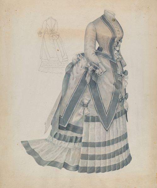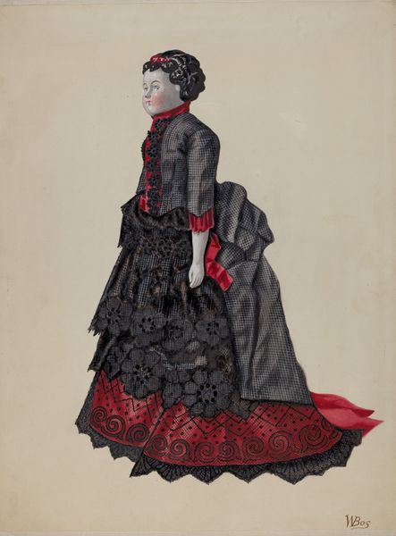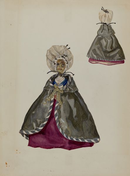 Charlotte Angus made this Quaker Costume Doll, we don’t know when, in watercolor. Look at how the watercolor is layered, how each brushstroke seems to build upon the last, a kind of slow, quiet accumulation of detail. The color palette is so restrained, mostly browns and grays, but it's not drab, is it? The texture of the paper itself seems to come through, lending a certain softness to the whole image. I keep coming back to the dress, all those folds and drapes rendered with such delicate precision. You can almost feel the weight of the fabric, and it really brings the figure to life. You know, it reminds me a little bit of some of the costume studies made by designers for the Ballet Russes, that same attention to detail, but with a completely different sensibility. It's like two parallel conversations happening across time, through the language of art. Ultimately, it’s an invitation to slow down, to observe, and to find beauty in the unexpected.