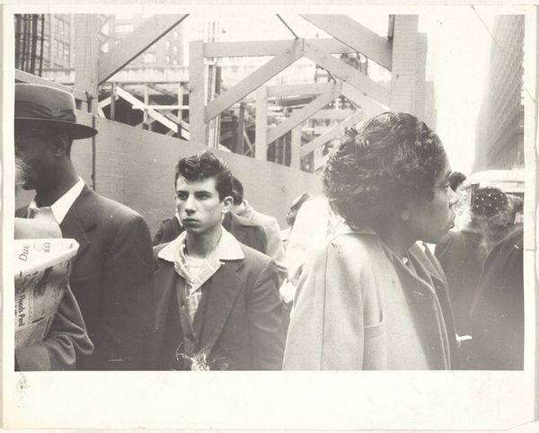 Robert Frank made this gelatin silver print, titled Street scene—Los Angeles, sometime in the mid-20th century. Just look at the grain of the image! It’s so palpable, like the artist is sifting through reality itself. Frank isn’t interested in slick surfaces or technical perfection. Instead, he embraces the immediacy of the moment. The texture feels like a deliberate choice, a way to convey the raw energy of the street. It's an image that leaves so much unsaid. The contrast in tone and clarity makes me think of the Ashcan School. He's more concerned with capturing the fleeting expressions and gestures of everyday life, making something profound out of the mundane. Street Scene is a reminder that art is less about definitive answers and more about embracing the ambiguity of the world. It’s a photograph, but it’s as gritty as any painting!