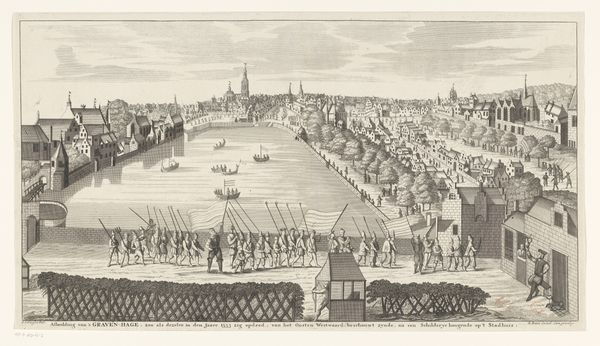 Editor: This engraving, "Arrival of the Procession at the City Gate of Antwerp; Entry of Ferdinand into Antwerp in 1635 (nr. 3)," created between 1639 and 1641 by Theodoor van Thulden, is teeming with life! It almost feels like I need a magnifying glass to take it all in, all these tiny figures... The overall impression is, well, rather grand and busy. What catches your eye most in this intricate depiction, would you say? Curator: Oh, what doesn't catch the eye! This isn't just an engraving; it's a historical snapshot, frozen in time, brimming with Baroque swagger. Van Thulden, bless his industrious soul, meticulously details Ferdinand's grand entry into Antwerp, and he's selling us the spectacle, see? It's propaganda, darling! Look at the sheer volume of people, a celebration, power consolidated in the city behind him. This print served a purpose – shaping perception! Now, how do you think the choice of engraving, rather than paint, influences the feel of this historical record? Editor: Hmm, an engraving… it feels official, almost like a document? More widespread, too, I imagine? Not some unique, precious artwork, but something to be distributed. Curator: Exactly! Paint says, "Here's a one-off." An engraving whispers, "This is repeatable. This is fact… and I'm printing many copies." Look at the use of line, that exquisite precision... it allows the scene to scale and scale. Tell me, how does knowing its function alter your read of the image? Editor: Well, seeing it as propaganda, that does shift things... it feels less like a neutral historical record, and more like a carefully crafted… narrative. All that detail contributes to a feeling of unquestionable legitimacy. I hadn't really thought of it that way before. Thanks! Curator: It’s all about perception, my dear, even centuries on. Never forget that!