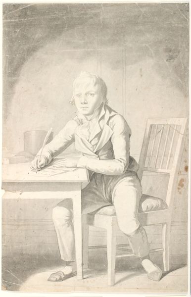 Otto Scholderer made this portrait of Victor Scholderer using pencil on paper. The drawing depicts a young boy standing with his hand on his hip, a pose of confidence that was usually reserved for adult men. The boy's clothing, especially the ruffled collar and breeches, indicates a certain level of affluence in nineteenth century Europe, likely Germany. This drawing is a window into the social norms of the time, reflecting the importance of family lineage and status. Otto Scholderer would have likely been trained in a formal academic setting. Researching the Scholderer family history and the art institutions of 19th-century Germany would offer valuable insights into the artwork's meaning and the social context in which it was created. Only by understanding these aspects of history can we fully appreciate the meaning of a work of art.