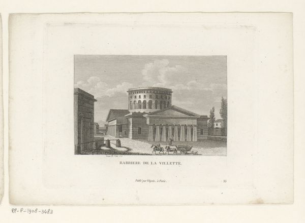 Jean-Baptiste Arnout created this print of the Palais Bourbon in Paris using etching and engraving techniques. Arnout was born during a pivotal moment in French history, just before the French Revolution. The Palais Bourbon, originally a symbol of aristocracy, became the seat of the National Assembly after the revolution, a place where the voices of the people were meant to be heard. Consider the figures in the foreground, seemingly dwarfed by the imposing architecture. Are they citizens, observers, or perhaps even revolutionaries? This print invites us to reflect on how spaces of power are represented and experienced. The clean lines and neoclassical style might evoke ideas of order and reason, but what happens when we consider this image alongside the tumultuous events of French history? Does the artwork maintain traditional representations of power, or does it hint at the alternative narratives that were beginning to emerge?