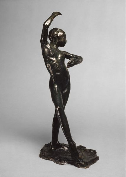 Editor: This is "Adolescent Girl", a bronze sculpture from 1921 by Charles Despiau. The sculpture, just the torso, seems both classical and unfinished, the dark bronze lending it an almost ancient quality. What first strikes you about this piece? Curator: I am struck by the artist’s deliberate engagement with classical forms and the powerful psychological presence he manages to evoke. The lack of a head is less about incompleteness, but about de-emphasizing individuality. The artist focuses our attention instead on universal themes of growth, vulnerability, and the transition into womanhood. Editor: How so? It feels very specific as a body. Curator: Precisely. The subtle curves and planes of the body capture a fleeting moment. The artist is acutely aware of his predecessors –the Venus de Milo comes to mind– but Despiau pulls the classical ideal into the modern era. How does the weight and texture contribute? Editor: I think the heaviness and rough texture of the bronze emphasizes the figure's groundedness, while the smooth curves highlight her potential for transformation. It’s a striking contrast! Curator: Exactly! Despiau invites us to contemplate not just the beauty of the female form, but the very process of becoming. The symbol of adolescence in cultural memory. It also suggests how we perceive idealized form – what we consider natural and unnatural. Editor: I didn't consider how the fragment also prompts reflection. That gives me a lot to consider. Thank you! Curator: It's been a pleasure. I hope it enriches your appreciation for the image and enduring power of sculptural forms.