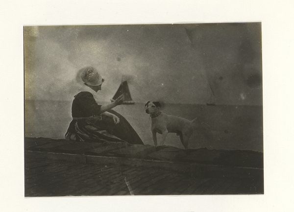 Hendrik Herman van den Berg took this photograph, known as "Hond en kat", or "Dog and Cat", using the gelatin silver process, a technique that dominated photographic printing for over a century. With its monochrome surface, this photographic print renders a timeless quality, where light and shadow define the scene. The choice of this printing process allows for a wide tonal range, capturing the textures of the dog's coat and the cat's fur. This is no ordinary snapshot. It is part of a moment, carefully composed by Van den Berg. The gelatin silver process, with its reliance on industrial production of materials, democratized photography, enabling both amateur and professional artists to explore the medium. This method is tied to wider social issues of labor and politics, reflecting a shift from handcrafted artistic practices to those enabled by technological advances. By focusing on the materials and making of this artwork, we understand its significance in challenging traditional distinctions between photography and craft, offering a glimpse into the intersection of art, technology, and everyday life.