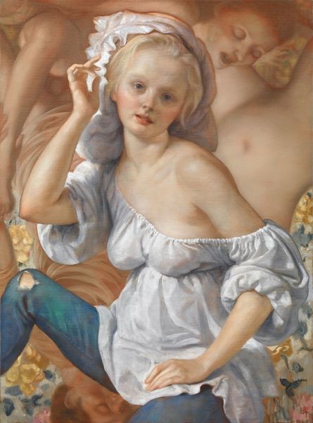 Gerda Wegener made this painting of the Madonna and child surrounded by musical angels, most likely in the 1920s. I find it so interesting how the figures are rendered with soft, flowing lines and a muted color palette. It gives the painting a dreamlike quality. Looking closely, you can see how Wegener built up the forms with delicate layers of paint. The texture is smooth, almost porcelain-like, and the colors blend seamlessly into one another. Take the angel on the left, for example. The way her hair is painted, with its subtle gradations of blonde and gold, creates a sense of depth and movement. It’s like Wegener is inviting us to enter a world of ethereal beauty and grace. This painting really reminds me of some of the early Renaissance masters, like Fra Angelico, who also used delicate colors and graceful figures to convey a sense of spiritual transcendence. But Wegener’s painting also has a distinctly modern sensibility, with its streamlined forms and subtle eroticism. Ultimately, it’s a work that embraces both tradition and innovation, inviting us to see the world in a new light.