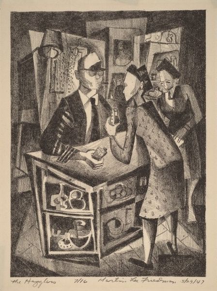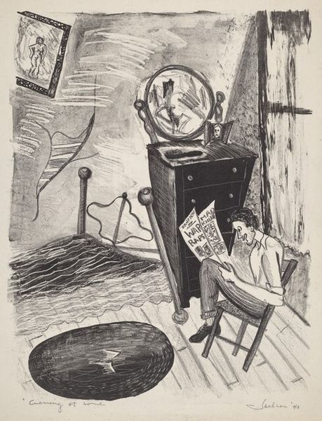 Georg Scholz made this lithograph, Newspaper Carriers (Work Disgraces), using lithographic crayon and tusche in the early twentieth century. Scholz has built up these characters using tiny, precise marks. It's a slow and careful process that brings a real sense of weight to the scene. There's a density to the way he uses tone, especially in the foreground. The contrast between the darks of the figures and the flatness of the paper almost feels sculptural. Look at the way the smoke rises, a jagged interruption to an otherwise rigidly ordered surface. It reminds me of Grosz, who also used caricature to critique society, but Scholz has his own way of skewing reality just enough to make you uneasy. Ultimately Scholz's image feels like a warning.