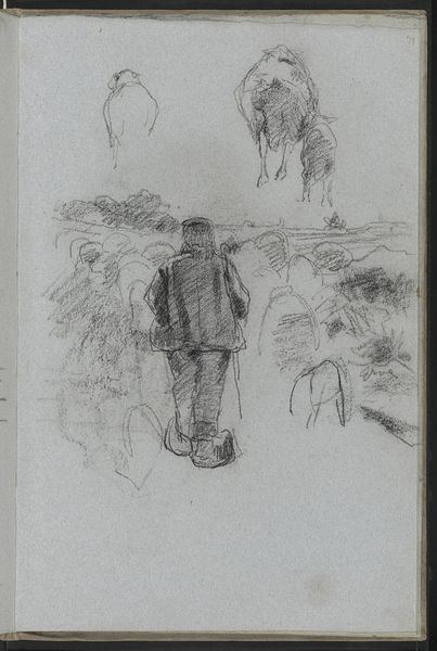 This is Willem Witsen's drawing of a seated man, possibly a shepherd. Note the figure's posture and the obscurity of the surrounding environment. The seated posture, a common motif throughout art history, is here imbued with a sense of quiet contemplation, echoing the classical tradition of the philosopher or the shepherd resting in nature. This echoes images of the Good Shepherd, a symbol of guidance and protection. The man sits in isolation, and this pose suggests a connection to the land. Consider, too, how the motif of the shepherd has evolved. From ancient pastoral scenes evoking a Golden Age to more modern interpretations reflecting the realities of rural life, the shepherd embodies a timeless connection between humanity and nature. We can sense the weight of collective memory at play, a subconscious yearning for simpler times. The emotional resonance of this image lies in its evocation of solitude and reflection, inviting us to contemplate our own relationship with the natural world. This echoes through time, a recurring dream of returning to a more fundamental state of being.