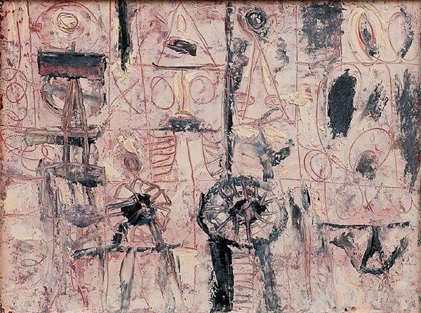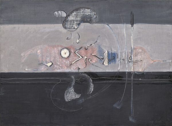 Mark Rothko created this painting, Olympian Play, using oil on canvas. Look closely, and you will notice how Rothko has diluted the paint, almost staining the canvas, rather than applying it thickly. The light washes create a sense of depth and layering. The open weave of the canvas itself becomes part of the image, giving a raw, unfinished quality. Rothko exploits the absorbent nature of the canvas, allowing the colors to merge and bleed into one another. This staining technique was gaining traction with abstract artists at this time. The ethereal quality of the painting is really reliant on the materiality. Rothko thinned his paints to achieve a translucent effect. He built up layers of color, one over another, to generate luminosity from within. Rothko's process was as much about subtraction, washing away, as it was about addition, building up. So, to truly appreciate this work, consider the artistic processes and the artist's deep understanding of materials.
