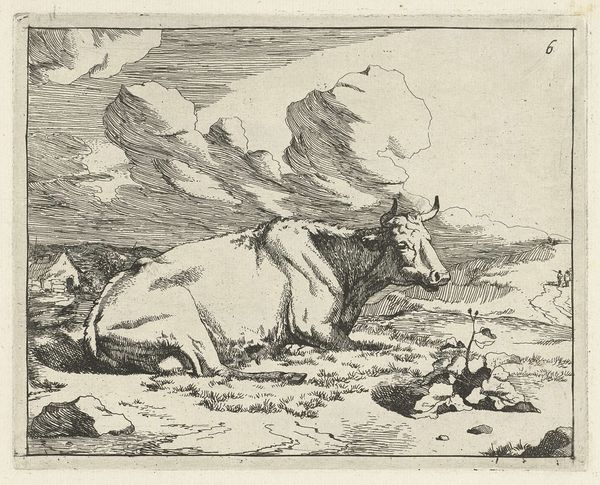 Marcus de Bye etched this image of a cow licking itself. But what does it mean? Cattle have long held symbolic importance. In ancient cultures, they were venerated for their life-sustaining qualities, embodying nourishment and maternal care. But this seemingly self-absorbed act of grooming is also a demonstration of self-sufficiency. It reminds me of the ouroboros, the snake that devours its own tail, symbolizing the eternal cycle of life, death, and rebirth. The cow's cyclical grooming ritual may represent nature's ceaseless self-renewal. Like the snake eating its tail, the cow, through this intimate act, subconsciously embodies the idea of the eternal return, resonating within our shared cultural memory. Consider how such imagery resurfaces, evolving with each new telling, reminding us that the past is never truly dead but lives on, transformed, within the present.