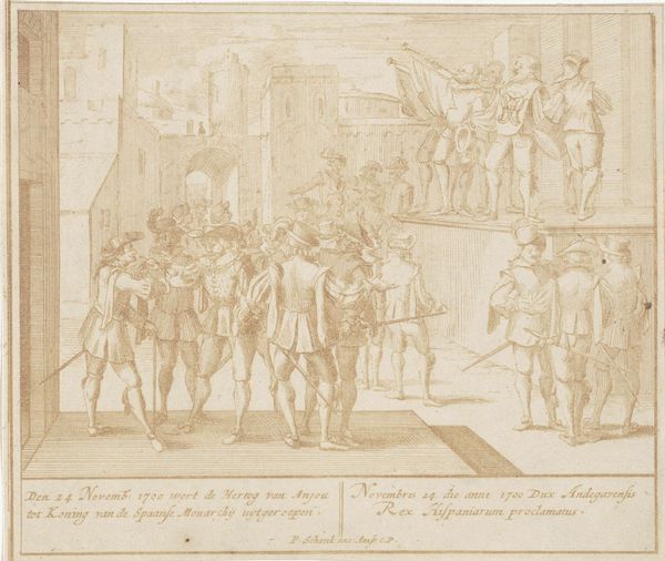 Editor: Here we have "Officers and other civic guardsmen of the IIIrd District of Amsterdam," a pen and ink drawing by Thomas de Keyser, created sometime between 1596 and 1667. I find the composition captivating, almost like a photograph capturing a candid moment. What are your initial thoughts? Curator: What strikes me is the visual power this image would have carried. Consider Amsterdam during the Dutch Golden Age: civic guard groups weren't just militias; they were vital social and political entities. De Keyser isn't simply rendering faces; he's portraying power and civic identity. Editor: That's fascinating. So, it's more than just a group portrait, it's a representation of the social order? Curator: Exactly! Think about who commissioned these portraits. It wasn't about individual vanity but communal pride and reinforcement of their status. The fact that they're all men, and armed, sends a strong message about who held power in Amsterdam's society. Editor: The loose sketch-like quality almost feels subversive against that idea. Curator: I would not describe it as "subversive," but its sketch quality makes this piece particularly engaging to me; the drawing’s efficiency focuses the gaze of its audience onto the men pictured, the details of whose faces give an impression of real personalities, individuality that transcends that of simple social functionaries. And in a pre-photography age, the rendering of civic leaders became incredibly powerful, didn't it? Editor: Absolutely! I guess I hadn't fully considered the influence the group dynamic plays within the socio-political context of the time. Curator: The group portrait served as a tool to present a united and powerful image of those in command, visually reinforcing the civic structure. I am also curious, where would this drawing been located? Did this influence who saw the piece and the artwork's influence? Editor: Right. Viewing the artwork that way definitely enhances its meaning and my understanding of the message! Thanks!