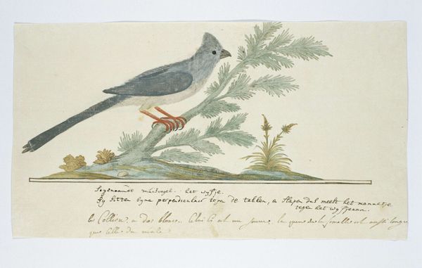 Robert Jacob Gordon created this watercolor drawing of a "Colius colius ? (White-backed mousebird)" at an undetermined date. Gordon was a Dutch explorer, military officer, and naturalist of Scottish descent, who is best known for his extensive travels in southern Africa during the late 18th century. The image speaks volumes about the historical context of colonialism and scientific exploration. As a naturalist, Gordon's task was to document and classify the natural world, contributing to the broader project of European expansion and knowledge production. The detailed rendering of the bird reflects a scientific gaze, yet it also carries the weight of colonial power dynamics. Who gets to name and define? Whose knowledge counts? Gordon's identity as a man of Scottish and Dutch heritage, operating within the context of colonial South Africa, further complicates our understanding. His work exists at the intersection of various cultural and political forces. Consider the emotional implications of capturing and cataloging living beings, reducing them to specimens within a colonial archive. This artwork then becomes a poignant reflection on the intertwined histories of science, colonialism, and identity.