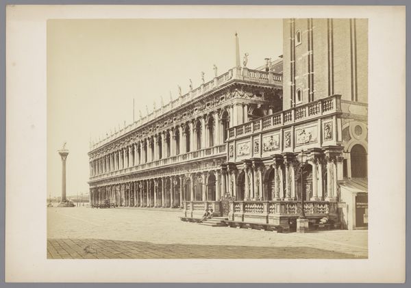 This albumen silver print shows the façade of the Palazzo Reale in Naples, and was created by Giacomo Brogi in the latter half of the 19th century. Brogi was known for his documentation of Italian architecture and landscapes during a period of significant political and social change, namely the unification of Italy. Through his lens, we see the grandeur of the Palazzo, a symbol of power, but also a reminder of the deep class divisions within Italian society at the time. Consider the figures in the foreground, dwarfed by the scale of the palace, mere shadows against this imposing structure. Brogi’s work invites us to reflect on whose stories are told through architecture. The image serves not just as a record, but as an exploration of Italy’s complex relationship with its past, present, and the legacy of power. What does it mean to capture a building, a place, and inadvertently capture the socio-economic atmosphere around it?