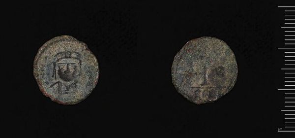 Curator: Here we see a coin of Antiochos II Theos of Syria, struck in Sardis. What strikes you first about this particular artifact? Editor: Its worn surfaces speak volumes about its age and journey through time. The material itself, likely bronze, seems almost porous. Curator: Indeed. Look closely, and you can see the faint image of Antiochos himself. His divine status is conveyed through this representation. Editor: And on the other side, we have an image of a tripod. I imagine the creation of the die used to strike this coin was laborious work for the craftspeople. Curator: Absolutely, the tripod is a powerful symbol of Apollo, a deity whose cultural significance permeated the Hellenistic world. Editor: Considering the value of the metal and the labor involved, it certainly prompts us to consider economy and material culture. Curator: It connects us to a very specific moment in history, revealing the ambitions of a ruler and the beliefs of his people. Editor: A tangible link to a distant past, reminding us of the human effort embedded in such objects.