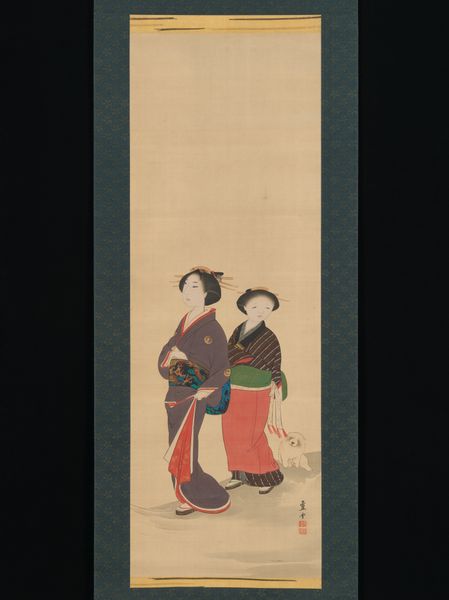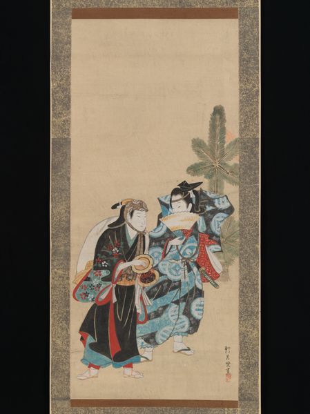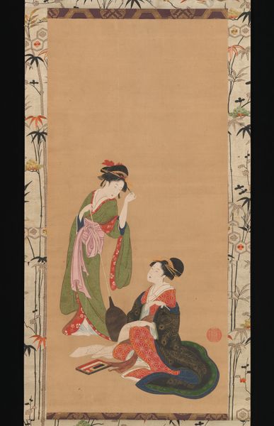 Editor: This woodblock print, "Courtesan and Attendants" by Miyagawa Shunsui, dating from 1744 to 1764, presents a striking composition of figures. What particularly catches my eye is the level of detail in the rendering of the fabrics. How would you interpret this work? Curator: Looking at it from a materialist perspective, consider the process: the woodblock print. Each color represents a separate block meticulously carved. This demands intense labor. Consider the social context; Ukiyo-e prints like this weren’t "high art" initially, but a commodity consumed by the rising merchant class. Does examining it in those terms change your view? Editor: Definitely. Thinking about it as a commodity shifts my perspective. The intricate detail wasn't just artistic expression, it was also tied to marketability, wasn’t it? And those elaborate clothes – were they a signifier of status within the floating world that these prints depicted? Curator: Exactly. The clothing indicates wealth and status within that specific societal structure, made accessible through the mechanics of printmaking and mass consumption. This democratisation, through production, challenges our conventional understanding of class and access, wouldn’t you say? Editor: That's a really interesting point. I hadn't considered the tension between the exclusivity of the subject matter – a courtesan and her attendants – and the relatively accessible medium of the woodblock print. It's given me a new appreciation for the social dynamics at play in its creation and reception. Curator: And by considering these material conditions, hopefully we’re able to see the woodblock prints as so much more than "pretty pictures".