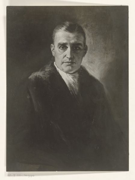 This photographic reproduction of a drawing, portraying Henri van Wermeskerken, was made by Adam Frequin. The somber tones and meticulous detail invite contemplation. Notice how the artist uses chiaroscuro, the contrast between light and dark, to sculpt the face and form of the figure. Light gently illuminates the right side of his face, drawing our attention to the eyes and subtle expression. The composition adheres to a traditional portrait structure, yet the softness of the charcoal lends a certain atmospheric quality. This texture challenges the rigidity often associated with formal portraiture. Through the deliberate play of light and shadow, Frequin captures not just a likeness but also a sense of interiority. It is in these nuances of light and form that the drawing transcends mere representation, inviting us to consider the complex interplay between appearance and essence.