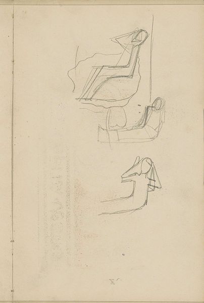 Cornelis Vreedenburgh created this drawing, "Figuurstudies en de torens van de Waag te Amsterdam," using pen and graphite on paper. The sketch presents a constellation of figures and architectural elements scattered across the page. The composition, seemingly random, defies traditional perspective, inviting a semiotic reading. Each stroke contributes to a network of signs that only partially reference reality. The artist disrupts fixed meanings by refusing to organize the image into a coherent, unified scene. The effect challenges our perception of space, opening up possibilities for new forms of representation. It’s as though Vreedenburgh is deconstructing the very act of seeing, inviting us to question the stability of meaning itself. The drawing embodies a modern sensibility where representation is not about mirroring reality, but about engaging with the fluid, unstable nature of perception.