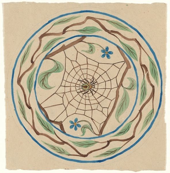 Curator: Looking at Carel Adolph Lion Cachet's "Ontwerp voor een bord," created sometime between 1874 and 1945, I’m immediately struck by its Art Nouveau elegance, even in its simplicity. It's a drawing, likely in ink, envisioning the decoration for a plate. Editor: It’s an interesting balance between organic form and industrial potential. You can feel the artist considering its function, the design itself lends itself to repetitive creation of identical patterns, for many units that will be consumed by end users. Curator: Exactly. The repetitive geometric elements, while decorative, point to larger dialogues within Art Nouveau, concerning mass production versus the unique artisanal object. Considering the time period, we also need to consider who these decorative arts are being produced and consumed for, situating them within class structures and colonial trade. Who had access to these designs, and who did the work to make them into objects for the home? Editor: That's key, looking beyond aesthetic appeal to unpack production, labor. These repeating elements wouldn't have been drawn by a machine; it would involve a process that requires human expertise and probably a printing or industrial method if turned into tableware. What does that reveal about its place as "high art"? What labor went into it? What machinery did it demand? Curator: Absolutely. And within the swirling patterns and geometric breaks, what narratives are we promoting through decor? Does it reify colonial power through the exotification of objects found abroad, for instance? It all connects to that wider social context. Editor: It definitely provokes questions about value, from design to execution to sale. It's not just about a pretty drawing, but how we structure labor and creativity. What did Lion Cachet himself get out of this endeavor, versus others further down the production chain? It raises fascinating points about authorship as well as ownership and the broader material conditions behind what may look like mere surface ornamentation. Curator: Considering these issues deepens our experience of this artwork far beyond just appreciation of the linework. Editor: Indeed, the social and material histories embedded in its design gives us so much to chew on—appropriate since it's a plate design! It certainly reframes how we think about consumption too, even with this single ink drawing.