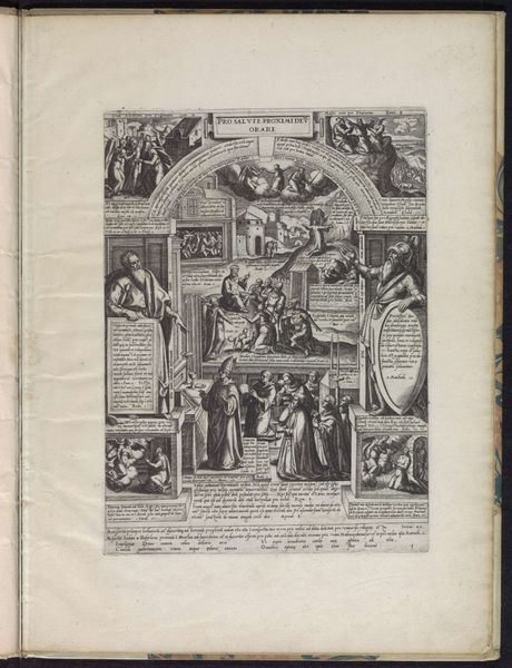 Philips Galle made this print called 'Sacrament of the Eucharist.' The print shows a symbolic representation of the Eucharist sacrament, central to Christian worship. It's divided into framed scenes, each depicting aspects of the sacrament's significance, with Latin text providing theological context. Galle produced this in the Netherlands during a period of intense religious and political upheaval, a time when the visual arts were deeply intertwined with theological debates. The piece reflects Counter-Reformation ideals, emphasizing the importance of sacraments. Galle's work was part of a broader visual culture used to reinforce Catholic doctrine amidst the rise of Protestantism. Art became a tool for the Church, visually asserting its authority and theological positions. To fully grasp this print, we might delve into the history of religious art, exploring the debates surrounding the sacraments. We can consider the socio-political context of the Netherlands in the 16th century, and the role art played in shaping religious and cultural identities.