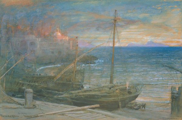 Editor: So, this is "Whitby in Wartime" by Richard Eurich. It’s an oil painting showing boats in a harbor. The busyness of the harbor gives the image a certain energy, but the grey palette suggests a melancholy feeling at the same time. How do you interpret the imagery at play here? Curator: The scene, with its tightly packed fishing boats, carries the weight of cultural memory. Ports throughout time and space are transit points. They always suggest points of connection but also separation. Considering this work represents wartime, does that amplify a sense of unease with you? Editor: Yes, definitely. It's like a temporary gathering point before a departure, filled with anxiety. The activity suggests normalcy, but there's also something unsettling, a hidden tension, which I suppose wartime evokes, no? Curator: Precisely. The symbol of the boat itself is potent. In the visual arts and even dreams, boats transport individuals and even whole societies into new states of being and awareness, yes? And even more broadly, we recognize that these boats provide communities sustenance. The mood and visual content make this work especially interesting for reflection. Are we at risk or are we at harbor? Editor: That's such an interesting idea, how simple images or even the harbor arrangement can communicate broader emotions or uncertainties. This makes me look at this work differently. Curator: Indeed. By examining the cultural resonance and symbolism within art, we access deeper meanings and perhaps even face complex realities. Editor: I’ll certainly think about the implications of harbor scenes and wartime anxiety more from now on. Thanks!