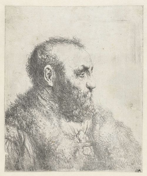 Jan Lievens created "Bust of an Old Man with Beard" using etching techniques, resulting in a piece where line and texture dominate the visual experience. The etching’s fine, dense strokes conjure a sense of age and introspection, a contemplative mood enhanced by the subject's downward gaze. Lievens employs hatching to sculpt form and evoke light, the density of lines defining the contours of the face and beard. Note how the linear structure of the background contrasts with the organic flow of the man's beard, creating a dynamic tension between order and nature. Here, one can see semiotic codes at play, where the beard—traditionally a symbol of wisdom and age—frames our reading of the subject. The lack of color directs our focus to the structure of lines, which in turn highlights the deeper structural elements of human existence—time, aging, and wisdom. The artwork invites us to consider the interplay of signs and forms in constructing meaning.