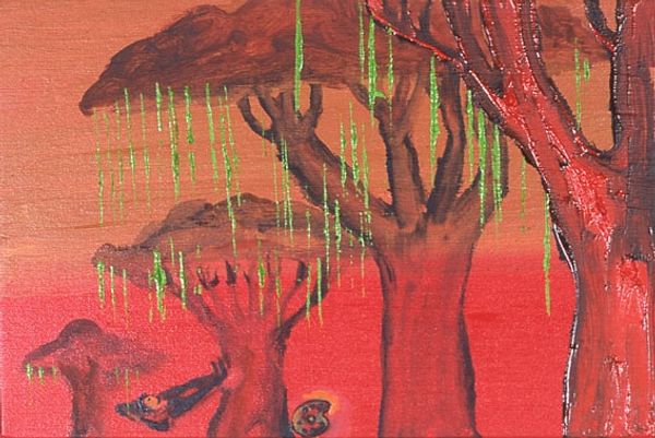 Editor: So, here we have Paulo Tercio’s "Aleijadinho Et Eius Proditores - Left Panel," painted in 2014, using oil paints. The stark features of the figure are so intriguing, but unsettling at the same time. What strikes you when you look at this piece? Curator: Immediately, I'm drawn to the texture of the paint itself. See how Tercio builds up these layers of oil? That's deliberate. The materiality speaks to a longer, almost archaeological process of creation. How does this relate, do you think, to the title referencing the Baroque sculptor Aleijadinho and ideas of betrayal? Editor: That's interesting! I hadn't really connected the physicality of the painting to the themes in the title. Perhaps the layered paint symbolizes layers of history, or even layers of deception surrounding the story of Aleijadinho? Curator: Precisely. The rough texture challenges traditional notions of a smooth, refined portrait. What if this "roughness" alludes to the social and economic conditions of artistic production? Editor: I suppose the use of oil paint itself is significant then. It's a traditional medium, often associated with wealth and power, but the expressionistic style kind of subverts those associations, right? It almost democratizes the materials. Curator: Exactly! This is a contemporary artist wrestling with the legacy of colonial Brazil, not through polished representation, but through a material engagement that questions the very means of art-making. And in so doing, they prompt a necessary engagement with difficult legacies. What do you make of that contrast now? Editor: It changes everything. Now, I see a conversation about the economic and cultural forces that shape art, not just a striking image. Thanks, that was truly insightful. Curator: My pleasure. Examining the material reality underlying even the most seemingly straightforward artworks unlocks deeper levels of meaning.