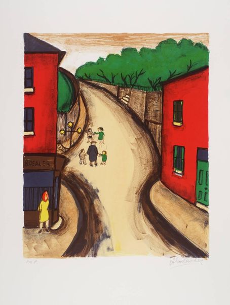 Ann Nooney made this color print, "Staten Island Street," and the process of making prints can be so satisfying. You know, the way each layer of color builds on the last, creating depth and texture. Look at the way Nooney uses color here, the blues and greens creating a kind of quiet harmony. The surface has this lovely, almost chalky quality, which softens the scene. It is possible to make out the individual strokes, or rather the areas of color, which really emphasizes the hand-made aspect of the work. Notice the street lamp, which is almost centrally located. The verticality of the lamp post emphasizes the slope and perspective, and the walking woman next to the lamp hints at stories of the city in the everyday. Nooney's work reminds me a bit of Edward Hopper, but with a gentler touch. Both artists capture the feeling of urban life, but Nooney's is a more intimate, less alienated view. It's a reminder that art isn't about answers, it's about offering us new ways to see and experience the world around us.