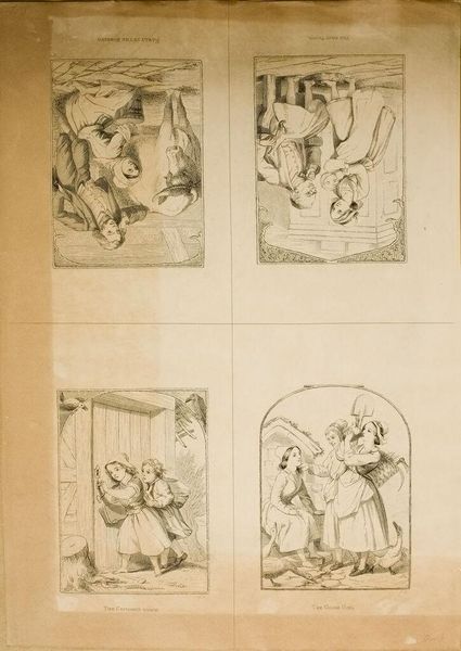 Curator: This is Joseph Andrews’s "Goose Girl," housed right here at the Harvard Art Museums. Andrews, who lived from 1806 to 1873, rendered this image in a monochromatic style. Editor: There's something almost theatrical about the poses. The central figure, with that slightly menacing expression, is certainly commanding attention. And what is she drinking? Curator: Possibly a commentary on class and labor, given the presence of farm implements. The symbolism in goose imagery is rich, often representing domesticity, but can also signal foolishness or vanity. Editor: The goose has long been connected with vigilance and even war. I see that suggested here in the face of that second woman. Are we witnessing the transition from innocence to experience, played out among these figures? Curator: Precisely the kind of societal reading I would expect. This piece invites speculation about gender roles and power dynamics within rural communities. Editor: Ultimately, the ambiguity is what stays with me. I'll be thinking about these women for a while.