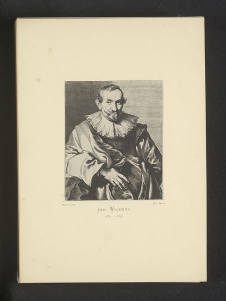 Curator: Up next, we have a portrait of Sebastiaan Vrancx, rendered as an engraving before 1877 by Schelte Adamsz. Bolswert. Editor: The tonal gradations are quite compelling for an engraving. The ruff frames the face in a manner that focuses the viewer's gaze; but the sword hilt emerging from his robes injects some much-needed diagonal tension. Curator: Indeed. Vrancx, of course, was a painter, draughtsman and printmaker himself—a leading figure in Flemish Baroque art. Editor: It's intriguing how the engraver, Bolswert, captures a certain reserve in Vrancx's expression. There’s a stillness, almost an introspection… Considering that Vrancx’s era was wracked by war, the stillness might symbolize something more than merely character, maybe even a silent protest. Curator: I agree. The sword almost serves as an emblem of Vrancx's role—he often depicted battle scenes. Bolswert seizes this nuance, adding a contemplative element, almost as if to ask, "At what cost does victory come?" The ruff itself might serve to both exalt and constrain the man; its very structure mirrors social mores and the burdens of status. Editor: Semiotically rich. The print makes superb use of Baroque aesthetics in what the sharp and soft areas mean as to texture and visual weighting, while at the same time evoking profound questions. Curator: It demonstrates how visual symbols are constantly reinterpreted, mirroring society's evolving concerns. The enduring relevance of Vrancx lies not only in the image, but in the human narrative imbued into its line work. Editor: Well, I think it serves to highlight the importance of material qualities like the texture of paper when coupled with Baroque imagery, creating a unified experience and an indelible memory. Thank you for providing historical context!